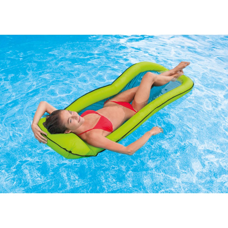 Die Mesh Lounge von INTEX ist der ideale Begleiter für jeden Badeausflüg. Der Aussenring ist schnell aufgeblasen und schon können Sie sich im Wasser entspannen und trotzdem abkühlen. Sie liegen auf dem Kunststoffnetz halb im Wasser, der Kopf liegt bequem auf dem integrierten Kissen.